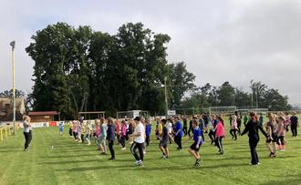 Morgens, am 20. Juni, verstellten noch Nebelschwaden den Blick über den Sportplatz. Das störte die Sportlehrerin Frau Schätzke und 16 helfende Eltern nicht, alles für das Sportfest vorzubereiten. Bei der Begrüßung und Erwärmung hatten alle noch Jacken an und die Erwachsenen wärmten sich mit einem Kaffee auf. Aber dann ging es los – mit sportlichen Höchstleistungen und mit Sonnenschein.
