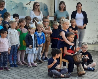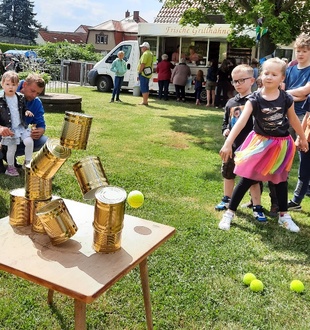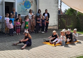 Im zweiten Anlauf feierten wir am 22.06.2024 unser Jubiläum. Lange hatten die Kinder für diesen Tag geübt, um ihre Eltern und die Besucher mit einem Programm zu überraschen. Die Erzieherinnen und einige Eltern trafen sich schon früh, damit alles vorbereitet werden konnte. Das Wetter sah erst gar nicht gut aus, doch pünktlich zum Beginn strahlte die Sonne.