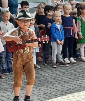 Weiter im Programm ging es mit Australien und da tanzten natürlich die Kängurus und aus Schweden besuchte uns Pippi Langstrumpf. Für Deutschland ließen wir das Rennsteiglied erklingen, da sorgte Constantin für große Begeisterung. Zu den Klängen von Veo, veo tanzten alle gemeinsam. Die Kinder und Erzieherinnen freuten sich riesig, dass alles so gut geklappt hatte, denn das Publikum forderte eine Zugabe. Nun tanzten noch einmal alle gemeinsam Veo, veo und das war bestimmt lustig anzuschauen. Im Anschluss konnten die Kinder die Hüpfburg erobern, sich am Dosenwerfen und beim Seifenblasen machen ausprobieren.