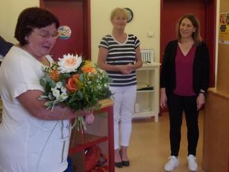 Am 31. Juli sagten nicht nur unsere ABC-Schützen endgültig „Tschüß“, sondern unsere liebe Frau Gudrun Schirm verabschiedete sich in den wohlverdienten Ruhestand. Sie hat 27 Jahre in verschiedenen Kitas der Verbandsgemeinde als Erzieherin und Heilpädagogin mit und für die Jüngsten gearbeitet und sie liebevoll auf das Leben vorbereitet. Deshalb haben wir sie mit Blumen, kleinen Geschenken und vielen guten Wünschen für ihre Zukunft verabschiedet.