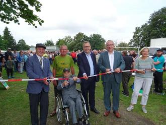 Nach dem üblichen Ritual um das Band durchschneiden, durch den Senior Heino Kirbst, seinem Nachfolger, dem Junior Heino, dem Bürgermeister der Gemeinde Molauer Land, Rolf Werner, Verbandsgemeindebürgermeisterin Kerstin Beckmann, Landtagsabgeordneten Daniel Sturm und dem Landrat selbst, ging dann die Oldie-Kolonne auf die rund 22 km lange Ausfahrt durch Städte und Dörfer rund um Sieglitz.