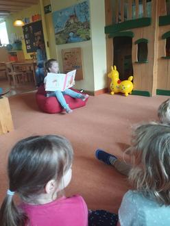 Melina hatte nun schon die erste Klasse beendet und wollte uns mal zeigen, was sie alles im ersten Schuljahr gelernt hat. Alle Kita Kinder waren sehr gespannt, was Melina zu erzählen hatte. Sie zeigte uns den Inhalt ihres Schulranzens und las uns aus dem Lesebuch vor. Alle staunten sehr, was man in der Schule so zu lernen bekommt.