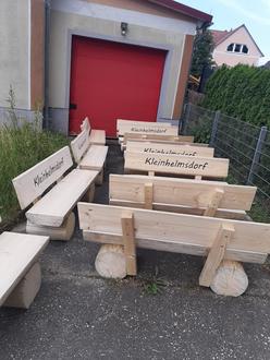 So konnten die Bänke in einem Sägewerk in Lichtenfels in Bayern bestellt werden. Am 3. Juli erfolgte die Lieferung der Bänke. Am 8. Juli trafen sich 20 Streichwütige, um die Bänke teils mit gesponserter und vom Heimatverein gekaufter Holzschutzlasur zu streichen. Durch Christian Beyer wurden die Bänke mittels Radlader in Eigenregie der Sponsoren an ihre Bestimmungsorte gebracht. Ein graviertes Sponsorenschild schmückt die Bänke, die an zwölf schönen Plätzen zum Verweilen der Einwohner und Gäste einladen. Diese Aktion zeigt erneut die Heimatverbundenheit der Kleinhelmsdorfer.