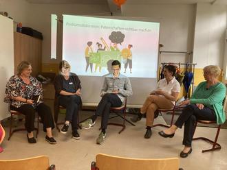 Am 19. Juni trafen sich die Lese- und Lernpaten aus Naumburg, Tröglitz, Hohenmölsen und Weißenfels sowie alle Interessierten in der Grundschule Osterfeld zum Austausch. Das Treffen stand unter dem Motto „Patenschaften sichtbar machen“. In einer Podiumsdiskussion gaben die Vertreterinnen und Vertreter darüber Auskunft, wie sie zur Lesepatin / zum Lesepaten wurden und wie weitere Paten gewonnen werden können. Im Anschluss tauschten sich alle Teilnehmerinnen und Teilnehmer bei Kaffee, Kuchen und herzhaften Häppchen über ihre Erfahrungen aus.