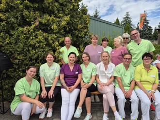 Am 5. Juli 2025 war es wieder so weit. Im Seniorenzentrum Stockberg in Stößen wurde das jährliche Sommerfest gefeiert. Die Vorbereitungen dafür waren schon seit Wochen im Gange. Unsere Heimbewohner waren schon Tage vor dem Fest aufgeregt. Auch dieses Jahr hatten wir Petrus auf unserer Seite, denn es schien die Sonne und es wehte eine leichte Brise. Um 15.00 Uhr ging es mit der Begrüßung durch den Geschäftsführer Herrn Fritsche und der Heimleitung Frau Schneller los. Dann wurde gemütlich Kaffee getrunken und Kuchen gegessen. Die musikalische Umrahmung übernahm dieses Jahr der Hohendorfer Musikant Herr Baum. Die Stunden vergingen wie im Fluge und man konnte sehen, dass sich unsere Heimbewohner im Kreise Ihrer Angehörigen sehr wohl fühlten. Zum Abendbrot wurde gegrillt und es gab Bratwurst mit Salat. Rückblickend kann man sagen, dass dies ein gelungenes Fest war und wir bedanken uns bei allen Helfern und Mitarbeitern, welche dies ermöglicht haben.