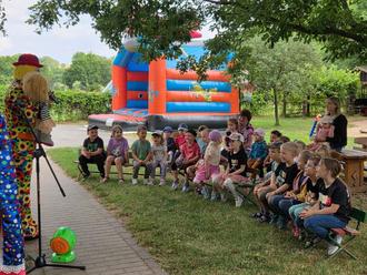 Danach wartete schon auf unserem Spielplatz eine große Hüpfburg (ein Dankeschön an unsere Treckerfreunde) auf fröhliches Toben.