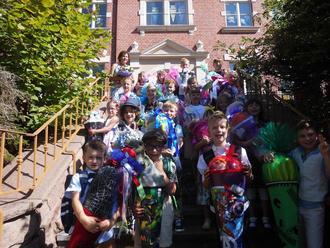 Die neuen Klassenlehrerinnen, Frau Hüfner und Frau Materlik, übergaben natürlich jedem Kind die langersehnte Zuckertüte und nahmen die ersten kleinen Kontakte zueinander auf. Zum Abschluss gab es auf der Schultreppe ein Erinnerungsfoto an diesen besonderen Tag. Bei herrlichem Sonnenschein und gut gelaunt wünschen wir allen eine schöne Feier und einen tollen Start in den neuen Lebensabschnitt.