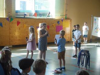 Zum Start ins neue Schuljahr wurden am 19. August 2023 in der GS Stößen 37 Kinder in 2 Klassen eingeschult. Die 4. Klasse, unter Leitung von Frau Strocka, begeisterte die Zuhörer mit einem abwechslungsreichen Programm aus Liedern, Gedichten, Darbietungen auf Instrumenten, einem lustigen Sketsch und einem tollen Mitmachlied für alle.