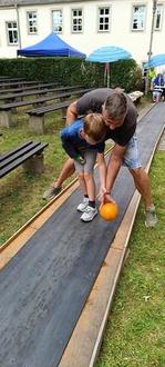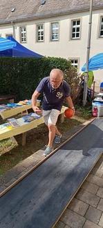 Drei Tage später stand mit dem Stadtfest Osterfeld die nächste Herausforderung für unseren KSV Grün-Gelb Osterfeld e. V. an. Weil wir ein Osterfelder Verein sind, eine über einhundertjährige traditionsreiche Geschichte haben und viel Unterstützung durch die Stadt erfahren, war es für uns klar: Wir bauen unsere mobile Bahnanlage unterm Matzturm auf und richten ein Preiskegeln aus.