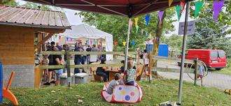 So hatte das Team des engagierten Kultur- und Heimatvereins an alles gedacht, wobei man aber am Ende beim Wetter machtlos war, denn der Wettergott hatte kein Einsehen mit den Veranstaltern. So öffnete er nun die Schleusen, wodurch zum Leidwesen der Jüngsten die große Hüpfburg nicht aufgestellt werden konnte. Um den Witterungsbedingungen zu trotzen, hatte man kurzerhand ein zusätzliches Zelt aufgestellt, wo dann die Mädchen und Jungen bei der Mal- und Bastelstraße und anderen Vergnügungen ihren Spaß hatten und die vom Kultur- und Heimatverein für alle Kinder spendierte Zuckerwatte nochmal so gut schmeckte.