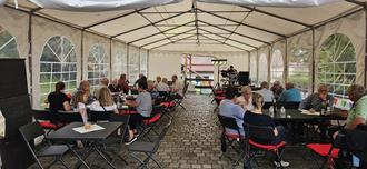 So hatte man sich im großen Zelt getroffen um dann in Gesprächen dem Regen zu trotzen