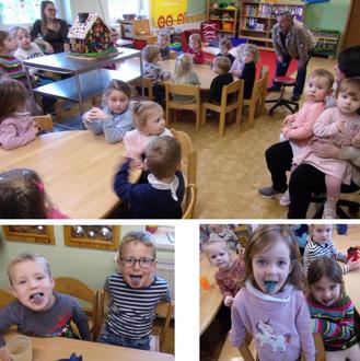 Nun, da endlich wieder alle da sind, konnten wir das große Hexenhäuschen, welches Opa Holger (unser Nachbar H. Tewes) so liebevoll gebacken und verziert hatte, aufknuspern. Da strahlten die Wichtelaugen und manche Schnute war vom Zuckerwerk gezeichnet.