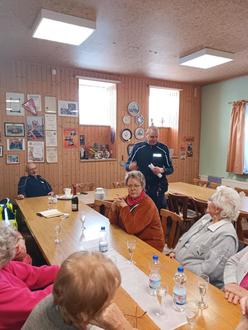 In guter Tradition treffen sich jeweils am zweiten Dienstag im Monat die reiferen Damen in der Feuerwehr und gestalten sich einen entspannten Seniorennachmittag unter dem Schirm des Feuerwehrvereins in lockerer Runde. Eva hat das gut vorbereitet und bei einer Tasse Kaffee und einem Stück Kuchen wird der soziale Kontakt untereinander gepflegt. Jede hat so ihre Wehwehchen und doch ist es immer ein gemütlicher Nachmittag. Je älter wir Menschen werden, umso mehr brauchen wir eben einen „Weißt du noch Freund.“. Der erste Treff im Jahr 2024 stand auch gleich unter dem Thema: „Im Alter sicher Leben“. Die Regionalbereichsbeamten Polizeihauptmeister Herr Döring und Polizeikommissar Herr Bock brachten ihr Fachwissen mit und konnten mit den Anwesenden in entspanntem Klima den Gedanken- und Wissensaustausch praktizieren.