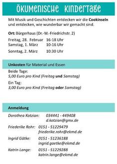 Weitere Infos finden Sie im Gemeindebrief oder zu erfragen im Gemeindebüro.
