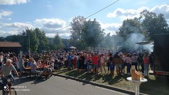 Am Sonntag pünktlich 9.00 Uhr begann dann das Erntedankfest mit dem alljährlichen Gottesdienst, gehalten von Pfarrer Greßler in Begleitung des evangelischer Posaunenchors Bad Kösen. Dieses Jahr glänzte das Fest wieder durch die Kulinarische Essensversorgung. Der Rehgulasch wurde eigenhändig mit viel Engagement und Liebe gekocht. Klöße und Rotkraut durften bei einem richtigen Sonntagessen natürlich auch nicht fehlen. Unabkömmlich auf einen Dorffest ist das Schwein am Spieß. Damit eine pünktliche Mittagsversorgung damit gewährleistet war, begann das Team bereits damit in den sehr frühen Morgenstunden. Zudem wurden frische Fischbrötchen mit selbstgebackenem Brötchen aus dem Holzbackofen und eine Kartoffelsuppe angeboten. Ebenfalls heiß aus dem Holzbackofen wurden Fladen serviert. Wer dann immer noch nicht satt war, konnte sich auch noch Frühstücksbrötchen für den nächsten Tag mit nach Hause nehmen.