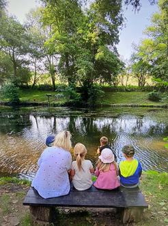 Danach ging es gestärkt weiter zum Spießteich. Die Freude war riesig als wir ankamen und endlich die Jungfernfahrten mit den Booten starten konnten. Zack waren alle Mutigen im Bach und schon fuhren die ersten Boote. Die Kinder waren begeistert, was sie Tolles erschaffen haben und dass die Boote so gut schwimmen. Wir bekamen nicht nur fahrende Boote und Flöße zu Gesicht, auch so manches Tier war neugierig und schaute was wir dort machten. Wir trafen auf Frösche, Fische, Käfer und Enten. Die Zeit verging wie im Flug und wir mussten zurück in die Kita, da wir nach diesem aufregenden Erlebnis alle Bärenhunger hatten. Unsere Glühhüpfer haben danach tief und fest geschlafen und die Wackelzähne sprachen noch stundenlang über unseren Ausflug.