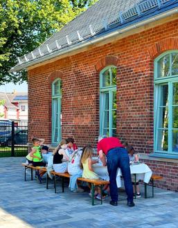 Die Klangkirche Haardorf lernten die Kinder aktiv kennen. Sie konnten verschiedene Musikinstrumente selbst ausprobieren und gemeinsam ein kleines Musikstück einüben – danke für die Möglichkeit an Frau Mahler. Ein besonderes Erlebnis war der Ausflug zum kleinsten Baumwipfelpfad Sachsen-Anhalt. Die Natur besser zu erlernen fällt in Zangenberg bei Zeitz nicht schwer, es gibt sehr gute Infotafeln vor Ort. Ein anschließendes Picknick in freier Natur war ein toller Höhepunkt des Ausflugs! Begeistert waren die Kinder auch als es darum ging, aus natürlichen Farbpigmenten Kaseinfarben herzustellen. Kasein ist ein natürlicher Bestandteil von Milcheiweiß. Das Ergebnis ist ein natürliches Anstrichmittel und gilt als Malfarbe für eine traditionsreiche Maltechnik in der Kunst.