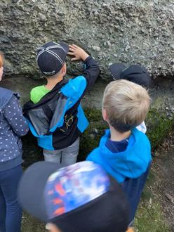 In Waldau angekommen, erkundeten die Kinder zunächst den Teufelsstein und erfuhren mehr über seine Legende.