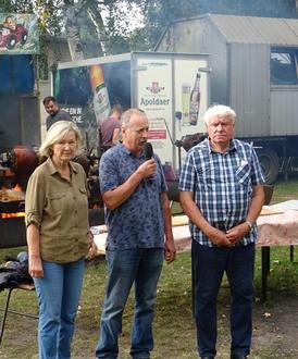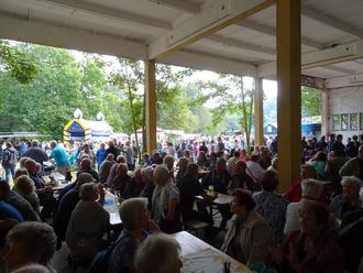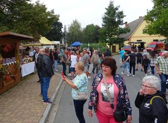 Die ersten Gäste nahmen schon während des Erntedankgottesdienst in der Festhalle Platz oder schlenderten entlang der Dorfstraße, die sich wie eine Festmeile darstellte. Und dann war es soweit - das Schwein am Spieß fast verzehrfertig, Kaffee und Kuchen ausgabebereit und die Händler in den Startlöchern. Kerstin Beckmann, ihr zur Seite der Bürgermeister Armin Kunze und der „Chef“ des Pfingst- und Heimatverein Dieter Glotz, eröffneten den Herbstmarkt 2023.
