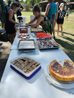 Frank und Tobias hatten schon ab 10.00 Uhr den Drehspieß angeheizt und eine Wildschweinkeule und eine Hausschweinkeule vorbereitet, gewürzt und aufgespießt. Die Frauen haben leckeren Kuchen gebacken und Kaffee gekocht. Fast 50 Personen, Kameradinnen und Kameraden, Partner und Partnerinnen und Kinder fanden sich zusammen. Mitglieder der Einsatzabteilung, Alters- und Ehrenabteilung und Jugendfeuerwehr bildeten mit dem Feuerwehrverein eine Gemeinschaft mit dem gemeinsamen Ziel in gemeinsamer Verantwortung. Die längste Anreise hatte Ricarda mit ihrer Familie aus Karlsruhe und Rico mit seiner Familie aus Taarstedt/ Schleswig, doch alle konnten den Aufenthalt mit dem Besuch ihrer Familien und der Unterstützung bei Bauarbeiten verbinden. Tolle Sache. Das Volleyballspiel wurde zeitlich nach hinten verschoben, denn bei diesen Temperaturen war das Risiko der Überhitzung wohl doch zu hoch. Dafür konnten Kinder und Erwachsene, mit und ohne Badesachen, den Löschwasserpool ausgiebig nutzen und mit viel Spaß das kühle Nass genießen. Also erst einmal lecker Kaffee und Kuchen und tolle Gespräche und Gedankenaustausch in gemütlicher Runde. Aktuelle Themen, technische Gespräche zur Feuerwehr, organisatorische Gespräche zur Vorbereitung der 90 Jahrfeier und 25 Jahre Verein, persönliche Gespräche zum Familienleben und der Kinderbetreuung und natürlich auch der allgemeine Dorftratsch bestimmten die Stunden mit immer wechselnden Gesprächspartnern und Partnerinnen. Gemütlich, schön und entspannend.