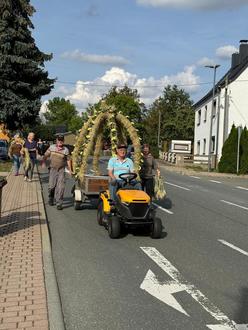 In Roda ist man glücklich darüber, das Durchschnittsalter verjüngt zu haben. So konnten die Heimatfreunde ein neues jüngeres Mitglied gewinnen. Dirk Bauer hat seinen Namen in der Tat! Er ist Bauer mit Leidenschaft, gemeinsam mit seinem Vater, einer der wenigen, die es noch gibt. Mit schwerer Technik transportierte er Strohballen zum Dreieck Roda.