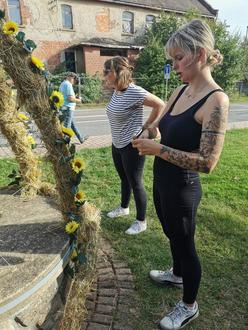 Heu, Sonnenblumen Girlanden, Getreidesträuße und vieles mehr zieren nun die Erntekrone.