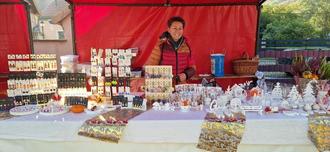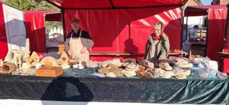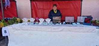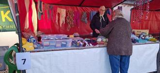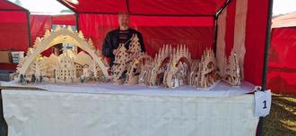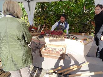 Schafwollware von Frau Friedel mit Spinnradvorführung und Holzarbeiten