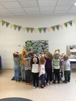 Die älteren Kinder der Einrichtung hörten begleitend einen Kinderrechte - Rap, das UNICEF-Lied der Kinderrechte, und stellten eine Wimpelkette her auf denen alle Kinderrechte sichtbar gemacht wurden. Auch mit Alltagsgegenständen wurden die Kinder an ihre Rechte herangeführt. Ein Kissen beispielsweise steht für erholsamen Schlaf und Ruhe. In den Gruppenräumen wurden Symbole angebracht, die den Kindern die Rechte im Alltag verdeutlichen sollen. In der Projektwoche hieß es immer wieder „Hand in Hand ins Kinderrechteland“. Alle Kinder tauchten in die spannende Welt ein und sahen sich gemeinsam mit den Erzieherinnen mehrere Kamishibai - Erzähltheater an. Videos und Plakate durften zur Veranschaulichung auch hier nicht fehlen.