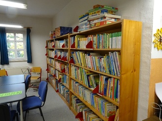 Hilfsweise steht auch eine kleine „Klassenbibliothek“ (s. Foto) zur Verfügung. Darüber hinaus hat die Schule Kontakt zur Stadtbibliothek in Naumburg, Frau Key, aufgenommen, die eine mögliche Unterstützung zugesagt hat.