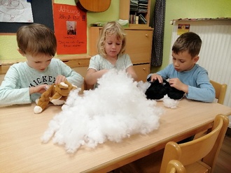 Was denkt Ihr wohl, was bei uns in der Kita wieder los war. Es kam ein großes Paket und alle waren riesig gespannt, was sich da drin versteckt. Ganz viele dünne Plüschtierfelle und große Säcke mit Füllwatte. Alle Strolche durften sich ihr Wunschtierchen herausnehmen. Und dann ging es auch schon los. Jeder bekam einen Berg mit Watte und dann mit viel Kraft wurden die Bäuche unserer Lieblinge gefüllt. Umso dicker diese wurden, umso niedlicher sahen sie aus. Zum Schluss halfen uns die Erzieherinnen beim zu nähen.