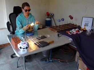 Versteckt im Buswartehäuschen zeigte eine Glasbläserin was sie kann. Rachel Van Liere ist die amtierende Glasprinzessin Rachel I. und wurde von der Lauschaer Glasbläsergilde ausgewählt und nach Löbitz delegiert.