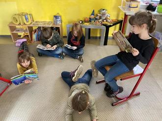 Im Anschluss tauschten sich die Schülerinnen und Schüler noch einmal über die verschiedenen Bücher aus und schrieben und malten ein Erinnerungsblatt für ihr Portfolio. Natürlich nutzten die Kinder die restliche Schulzeit des Tages und lasen einfach weiter. Ein wundervoller Tag! Wir möchten uns recht herzlich bei den Vorleserinnen bedanken und hoffen auf eine Wiederholung im nächsten Jahr.