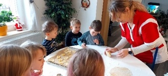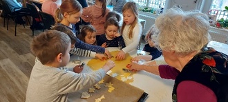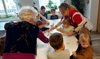 Die kleinen Strolche und die Gäste der Tagespflege Mertendorf backen gemeinsam Plätzchen