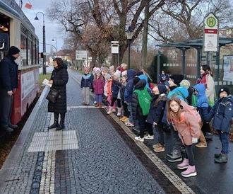 Es ging schon um 7.35 Uhr mit dem Linienbus los. Nach Ankunft am Salztor wartete das Erlebnis „Straßenbahn fahren“ auf uns. Für viele Kinder war es die erste Fahrt mit der Wilden Zicke. Entsprechend aufgeregt waren wir. Vorbei an der Vogelwiese, dem Kino und entlang der Stadtmauer fuhren wir zum Hauptbahnhof.