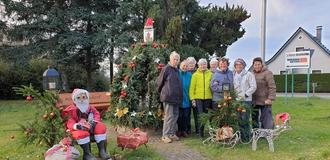 Sie leuchtet wieder, grün und rot- die Farben der Weihnachtszeit. So zeigt sich die Weihnachtskrone in Kleinhelmsdorf seit dem 1. Advent in der Lindauer Straße. Schön und prachtvoll zeigt sie sich! War es doch anfangs ein Problem, Tannengrün zu organisieren. Doch die " Fleißigen Helfer ", so nennen sich die Frauen und Männer, die stets zur Stelle sind, wenn es um die Verschönerung des Ortsbildes geht. Sie haben es geschafft, Grünes zum Binden der Weihnachtskrone ran zu schaffen. Einwohner von Kleinhelmsdorf sägten daraufhin von ihren Tannenbäumen Äste und Zweige ab. Nur so konnte in großer Vielfalt gebunden werden. Ein herzliches Dankeschön dafür. Nach getaner Arbeit ging es zu Posers in die Werkstatt zum Aufwärmen. Jeder hatte etwas mitgebracht; Essen, Trinken, Leckereien. So ließen wir den Abend gemütlich ausklingen. Ein großes und herzliches Dankeschön an den Vorstand des Heimatvereins, der die Kosten für den spontanen Einkauf für Dekorationsmaterial für die Weihnachtskrone unbürokratisch übernommen hat.