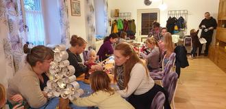 Gut besucht war der Bastelnachmittag im Seniorenraum vom Rittergut in Kleinhelmsdorf. Katrin Hopfe hatte dazu eingeladen und ihre Helfer Birgit Beyer sowie Martina Morawe standen ihr hilfreich zur Seite. Ob Adventsgesteck, Tannenbäumchen, leuchtende Flaschen, Schneemänner usw., der Phantasie wurde keine Grenzen gesetzt.