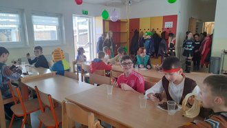 Am Rosenmontag, dem Höhepunkt des Karnevals, feierten auch die Jecken der GS Stößen ihren traditionellen Schulfasching. Nach einer zünftigen Eröffnung in der Turnhalle hatte jedes Kind die Möglichkeit, sich an verschiedenen Stationen auszutoben, schminken zu lassen oder sich etwas zu basteln. Bei so viel Trubel bedurfte es natürlich auch einer Stärkung durch Speis und Trank. Der Förderverein der GS Stößen organisierte dazu Pfannkuchen, Muffins, Getränke sowie Obst und Gemüse.