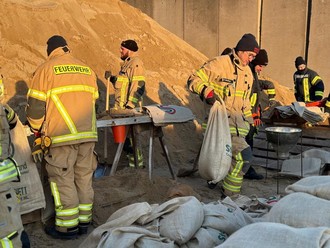 Der Deich an der Helme musste auf einer Länge von ca. 1km mit Sandsäcken und Big Packs gesichert werden. Bei der Sicherung des Deiches kam erschwerend hinzu, dass die Sandsäcke bei Minus 8 Grad nur noch gefrorene Eisklumpen waren und so den Sandsackverbau immens erschwerten. Die Kameradinnen und Kameraden wurden verpflegungstechnisch bestens versorgt und konnten hervorragende Hilfe leisten.