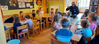 Am 14.02. hatten wir Besuch von Herrn Döring, dieser ist Polizeihauptmeister und hat uns erklärt warum man nicht mit Fremden mitgehen darf.