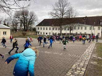 Am 15. Februar war es nun wieder so weit. Unsere Einschülerinnen und Einschüler begannen ihren 100. Schultag. Zunächst wurde der Raum geschmückt und jeder bastelte eine passende Krone. Dann trafen sich die Schülerinnen und Schüler der 1./2. Klasse auf dem Schulhof. Dort klatschten sie 100 Sekunden lang und hüpften ebenfalls 100 Sekunden. Keiner dachte, dass es so anstrengend sein würde. Danach bildeten die Kinder Zweierteams und rannten abwechselnden so lange bis sie 100 Runden geschafften hatten.