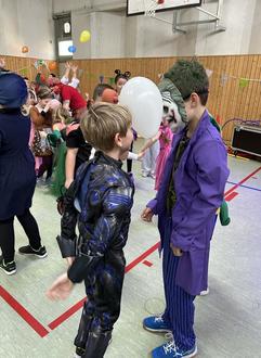 ... schallte es am 26. Februar durch das Schulhaus und die Turnhalle. Mit diesem besonderen Ruf startete für die Osterfelder Schülerinnen und Schüler ein ganz besonders bunter Tag mit Musik, Tanz, Spielen und guter Laune. Nachdem alle Kinder ihre Kostüme im Klassenraum vorstellten, ging es in die Turnhalle. Clown Theo übernahm das Kommando und heizte allen richtig ein. Er spielte die passende Partymusik und brachte alle Körperteile zum Wackeln. Bei vielen lustigen Spielen durften die Kinder ihr Können beweisen und am Ende gewannen alle, denn die Bonbonkanone schoss für jeden kleinen Leckereien in die Luft. Am Ende durfte jedes Kind Kuchen naschen, welcher von den Hortnerinnen gebacken wurde.