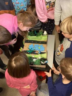 Am 15. März besuchte Frau Klaus die Lerngruppe 2, um den Kindern mehr über ihre Arbeit zum Schutz der Kröten zu erzählen. Sie geht jeden Morgen zu den Krötenschutzzäune und kontrolliert die Eimer. Wenn sich dort Tiere befinden, hilft sie ihnen sicher über die Straße, damit die bedrohten Amphibien sicher zu ihrem Laichplatz kommen.