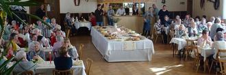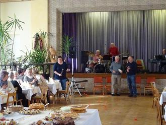 Kurze Begrüßung und anerkennende Worte vom Bürgermeister, alsdann der Startschuss zum Kuchenbüfett (s. Foto) erfolgte. Die Naumburger Musikanten unterhielten die Gesellschaft und flotte Lieder animierten zum Tanz. Jens Bähring aus Rudolstadt unterhielt dann mit Comedy Entertainment als „Scherzbube“ und auch als „Mutter Ute“ und erntete viel Applaus. Bis hierher, nur Lob und Dank an die Organisatoren. Anke Bernhardt (48) aus Osterfeld und Helga Aehnelt (84) aus Löbitz waren mehr als zufrieden. Gudrun Rödiger (70) aus Pauscha war zum ersten Mal hier und angenehm überrascht. Überrascht war man auch bei der Einladung zum kalt/warmen Abendbüfett. Dieter hatte mal wieder alle Register für die Reliktpflege gezogen. Und die Nelke zum Abschied bleibt allen in guter Erinnerung. Bis zum nächsten Jahr und hoffentlich auch mit diesem Publikum und „unserem Dieter“, das war auch eine deutliche Ansage von Veronika Kunze aus Punkewitz.