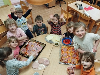Das Abenteuer ging weiter. Ein Hauch von Italien ist eingezogen. Pizza-Tag ist angesagt. Wir waren kleine Pizzabäcker. Vom Teig bis zum Belag haben wir alles selbst gemacht. Der Teig flog in die Luft, das Mehl landete im Gesicht und das Nudelholz wurde zum Mikrofon. Gelacht, gesungen und getanzt wurde auch zwischendurch. Das Kneten vom Teig war besonders cool. Es klebte und knetschte an den Händen. Am Ende war es ein gelungener Teig. Mais, Käse, Salami, Gurken und vieles mehr war angesagt. Lecker Schmecker haben wir gerufen. Wir freuen uns schon auf den nächsten Italienischen Tag.