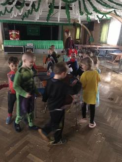 so begrüßten wir uns am 14. Februar 2024 zu unserer großen Faschingsparty. Mit einem leckeren Frühstück starteten wir in den Tag. Nachdem wir uns gestärkt hatten, stellte jedes Kind auf einem Laufsteg sein Kostüm vor. Danach liefen wir in unseren bunten Kostümen zur Kulturstätte Possenhain, wo uns abwechslungsreiche Spiele erwarteten. Beim Sackhüpfen, Eierlaufen, Besenwettrennen, Mäusefangen und vielem mehr, hatten wir viel Spaß und erhielten tolle Preise.