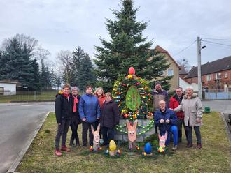 Der Frühling ließ in diesem Jahr nicht lange auf sich warten. Drum wurden die „Heimatfreunde“ in Roda/Weickelsdorf sowie die „Fleißigen Helfer“ in Kleinhelmsdorf aktiv, um Vorbereitungen für die Osterdekoration zu treffen. In Roda traf man sich bei Familie Türpisch im Hof. Detlef Bagehorn kam mit seinem Traktor zum Einsatz, um alles an Ort und Stelle zu transportieren. Die fünf Männer der „Heimatfreunde“ konnten beim Aufstellen der Dekoration ihre Kräfte messen. Birgit Berthold hatte die grandiose Idee, an dem großen Osterei ein Solarlicht anzubringen. So kann auch in der Dunkelheit der Osterschmuck bestaunt werden.
