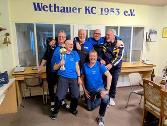 Bereits einen Spieltag vor dem Saisonende können die Kegler des Wethauer KC nicht mehr von der Tabellenspitze verdrängt werden. Im vorletzten Punktspiel um die Meisterschaft 2024/2025 hatte Wethau die Mannschaft aus Bad Kösen zu Gast. Diesmal begann Detlef Schneider (443), welcher mit einer super Leistung den Grundstein für den späteren Sieg legte. Auch Gerhard Henschler (436) sowie Jürgen Lindam (442) zeigten im Anschluss, dass man unbedingt als Sieger die Bahn verlassen wollte. Bad Kösen hatte überhaupt keine Chance hier was zu gewinnen. So konnten Wolfgang Canitz (408) und Steffen Schindler (401) beruhigt aufspielen, denn das Match war schon längst entschieden. Sören Apelt (441) setzte dann ebenfalls mit einer sehr guten Leistung den Schlusspunkt in diesem Spiel. Mit 2571 : 2372 gewann Wethau nicht nur das Match hoch verdient, sondern auch die Meisterschaft vorzeitig. Da die Spieler aus Lossa den Mitkonkurrenten aus Göbitz am gleichen Tag bezwangen führt Wethau nun uneinholbar die Tabelle an. Somit ist der WKC jetzt schon Burgenlandkreismeister, Herzlichen Glückwunsch. Die zweite Mannschaft aus Wethau hatte einen Tag später ein Heimspiel gegen Großgörschen. Angespornt von den Ergebnissen der Ersten legte Dietmar Ronneberger (403) gut los. Auch Frank Schlegel (407) konnte seine guten Trainingsergebnisse bestätigen. Durch die guten Leistungen der ersten beiden Spieler beflügelt, übertrafen sich Steffen Wiebicke (436), Siegfried Kresse (431), sowie Vanessa Lehmann (432) gegenseitig mit hervorragenden Ergebnissen. Nun führte man haushoch mit 194 Holz. Somit kam als letzte Yvonne Lehmann (372) zu ihrem Einsatz. Auch Yvonne machte ihre Sache gut, so das Wethau II. mit super erspielten 2481 : 2254 Holz deutlich gewannen. Im Nachholspiel eine Woche zuvor hatte man den Spitzenreiter aus Kretzschau zu Gast. Anfangsstarter Georg Kanne (371) fand diesmal überhaupt nicht zu seinem gewohnten Spiel, dennoch lag man in Führung. Steffen Wiebicke (387) machte es besser, aber er unterlag seinem Gegner. Als dann Ralph Lehmann (351) gar nicht zurechtkam lag man mit 35 Holz zurück. Im Anschluss zeigten Dietmar Ronneberger (418) sowie Axel Wiebicke (410) wie man es besser macht. Mit 7 Holz Rückstand musste nun Siegfried Kresse (404) alles geben um noch die Wende zu schaffen. Doch Stefan Kühnl (442) spielte überragend und machten den Sieg für Kretzschau perfekt.