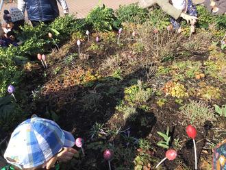 Aufgeregt und voller Vorfreude haben die Kinder den Brunnen vor der Kita bunt geschmückt.