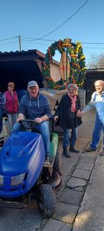 Die Fleißigen Helfer in Kleinhelmsdorf hatten alle Vorbereitungen für das Schmücken des Osterbrunnens getroffen. Es wurde nochmals Grünes organisiert und am Brunnengestell ausgetauscht. Durch die milden Temperaturen der vergangenen Wochen trocknete das Tannengrün massiv aus und färbte sich braun. Ostereiergirlanden wurden aufgehängt und jeder bekam durch Katrin Hopfe entsprechende Anweisungen. " Einer muss ja das Kommando haben ", so Karin Poser!