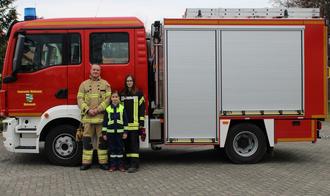 Neben Tobias sind auch die beiden Töchter Raya und Svenya (s. Foto) in der Feuerwehr aktiv. Tobias Grüner trat 2017 nach erreichen der Altersgrenze seines Vorgängers, Manfred Steidel, in dessen „Fußstapfen“ und wurde zum Leiter der Freiwilligen Feuerwehr gewählt. Neben seinem Engagement zeichnet ihn seine Teamfähigkeit und das Wissen und Können um die der Feuerwehr anvertrauten Technik aus. Im Dienstgrad als Brandmeister führt er ein 29 Kameraden zählendes Feuerwehr Team, inbegriffen 5 weibliche Kameradinnen und eine 5 Kameraden zählende Alters -und Ehrenabteilung. Die Meineweher Wehr ist eng mit dem dortigen Feuerwehrverein verbunden und trägt so zu einer aktiven Dorfgemeinschaft bei. Die Feuerwehr Meineweh begeht im August diesen Jahres das 90-jährige Bestehen. Neben der Herausforderung, die Baumaßnahmen am Feuerwehrobjekt zu vollenden, wird das Jubiläum neben den Feierlichkeiten auch das Ansehen der Feuerwehr weiter beleben.